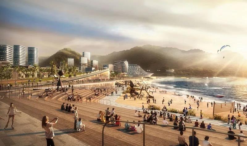 In the scheme, the concept of "boundless new marine paradise" is put forward. Based on the fractal theory and the integrated design of land and sea, and considering the ecological protection, disaster prevention and the feasibility of engineering technology, the sea area utilization mode is innovated to expand the limited space of Xiaomeisha resort.