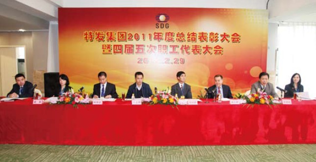 會議通過了集團(tuán)施長躍總經(jīng)理代表經(jīng)營班子所作《特發(fā)集團(tuán)2011年度工作報(bào)告》,以及《2011年度集團(tuán)公司業(yè)務(wù)招待費(fèi)情況報(bào)告》、《2011年度集團(tuán)工委會經(jīng)費(fèi)收繳和使用情況報(bào)告》、《職代會提案處理情況說明》等文件,對先進(jìn)集體和個(gè)人進(jìn)行了表彰,最后集團(tuán)劉愛群董事長講話!稌h決議》指出:2012年是特發(fā)的“行動(dòng)年”,這是向全體特發(fā)員工發(fā)出的戰(zhàn)略號召。我們每一個(gè)特發(fā)人都要以“十二五”規(guī)劃為指引,積極行動(dòng)起來,認(rèn)真學(xué)習(xí)、深刻領(lǐng)會、全面貫徹落實(shí)本次大會確定的各項(xiàng)任務(wù),在集團(tuán)董事會和經(jīng)營班子的帶領(lǐng)下,團(tuán)結(jié)一致,拼博進(jìn)取,以優(yōu)異的成績,為實(shí)現(xiàn)集團(tuán)的跨越式發(fā)展做出更大的貢獻(xiàn)!